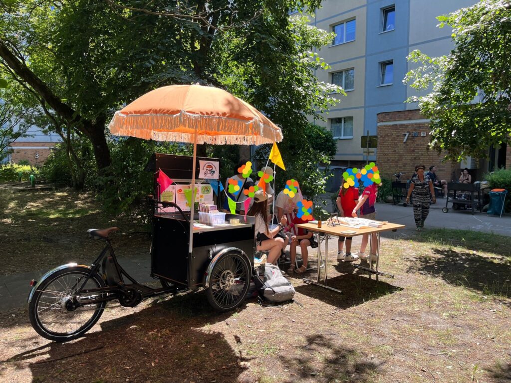 Die Mobile Stadtteilarbeit war als Gast beim Sommerfest der Wohnungsbaugenossenschaft Zentrum eG im Ernst-Thälmann-Park eingeladen. Dabei boten wir Henna-Tattoos und Stofftaschen zu bemalen an. Ebenso brachten wir etliches Material für Spiel-/Spaß mit und konnten spannende Gespräche mit den Menschen aus der Nachbarschaft führen.