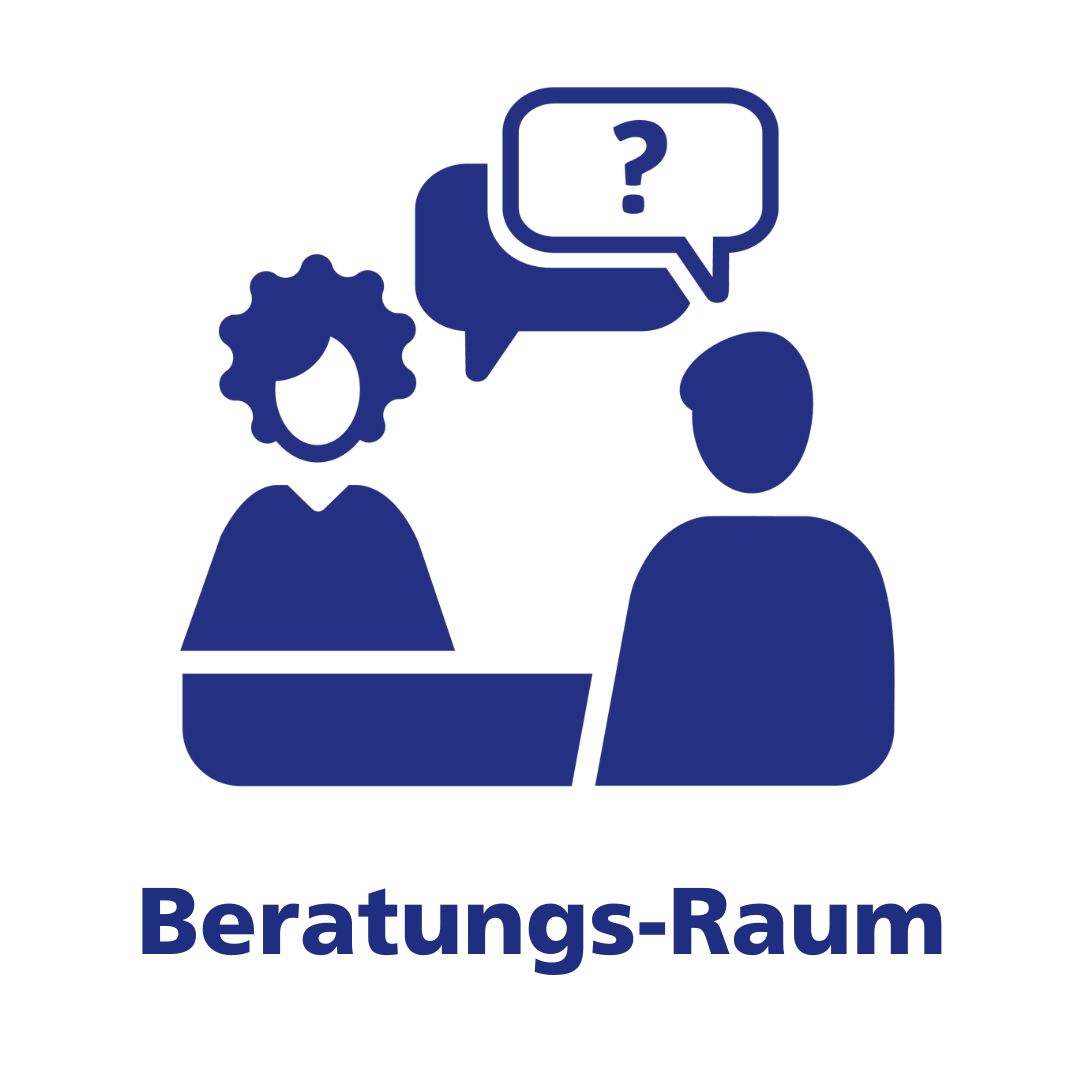 Der Beratungsraum befindet sich Flur des 1. Obergeschosses, gleich neben dem Foyer. Er ist 15 m² groß und mit dem bestuhlten Tisch und zwei Computerarbeitsplätzen für kleine Gesprächs- und Arbeitsrunden und natürlich für Beratungen geeignet.